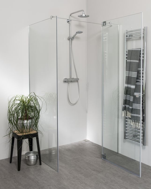 Eck Duschkabine mit Klemmprofilen an Seitenwand & breiter Pendeltür, teilgerahmte Eckdusche in Sondermaßen - PHXS